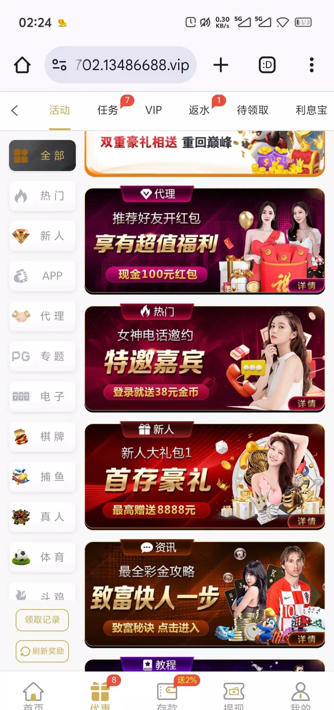 官网 5958.com 活动入口如图 注册了直接领取 不用绑定手机号就可以试能不能领取 领取了之后需要充值任意金额打38流水才能用 或者是提现 一杯水 我充值20 提了两百多到了 如图 要不要冲自己考虑 被黑不负责 得吃助力个有效谢谢