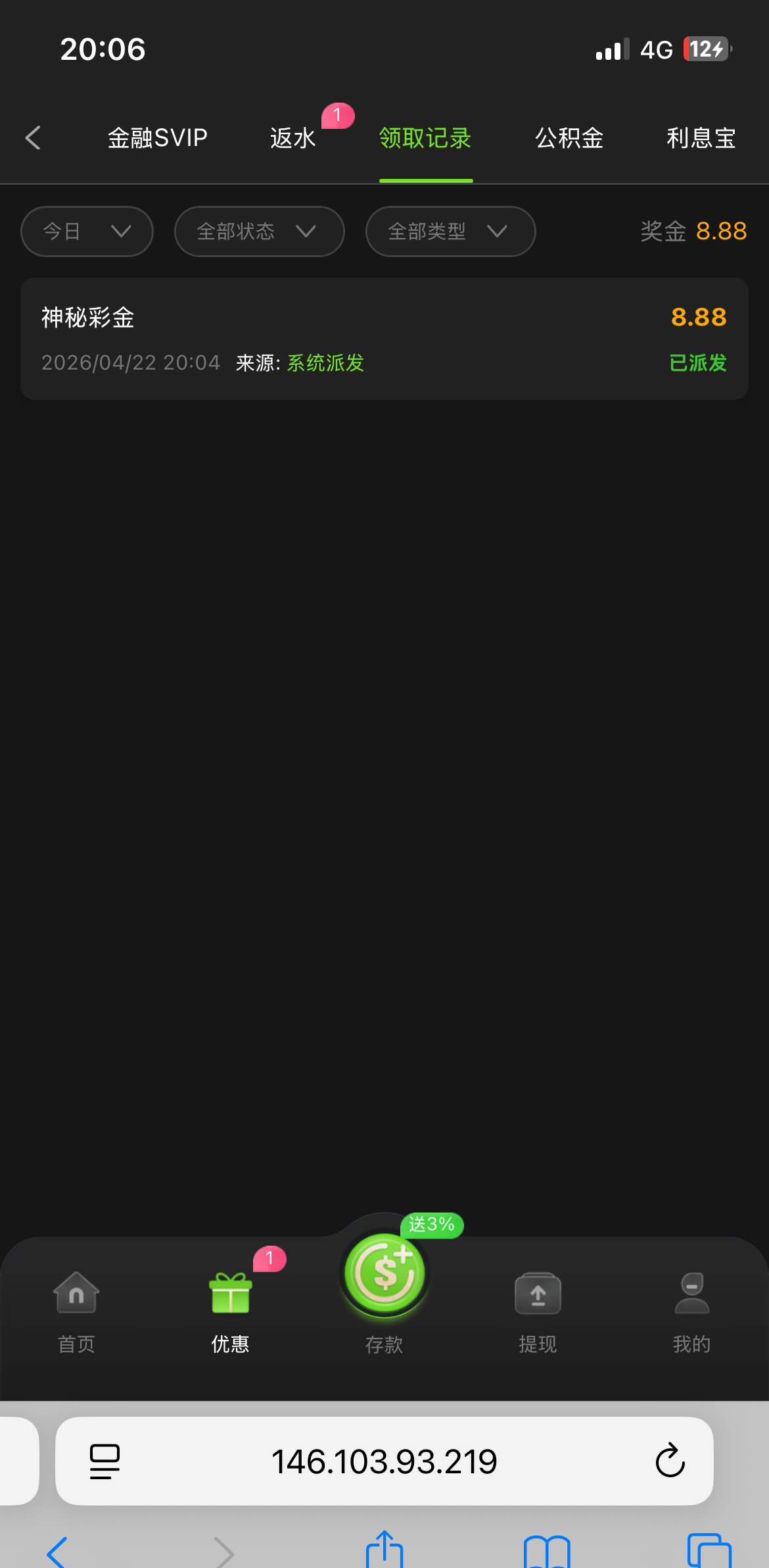 之前充值过100 今天登录上去有8.88 玩过的去看看